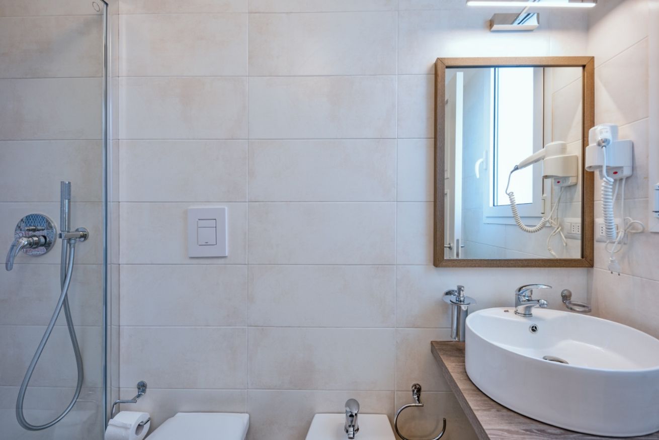 Luminosa, dotata di un grazioso balconcino e di ogni comfort e servizio: aria condizionata canalizzata, minibar, cassaforte digitale, TV 32 pollici a schermo piatto con servizio TV SAT, connessione wireless con fibra ottica gratuita, servizio igienico ad uso esclusivo con asciugacapelli e linea cortesia.